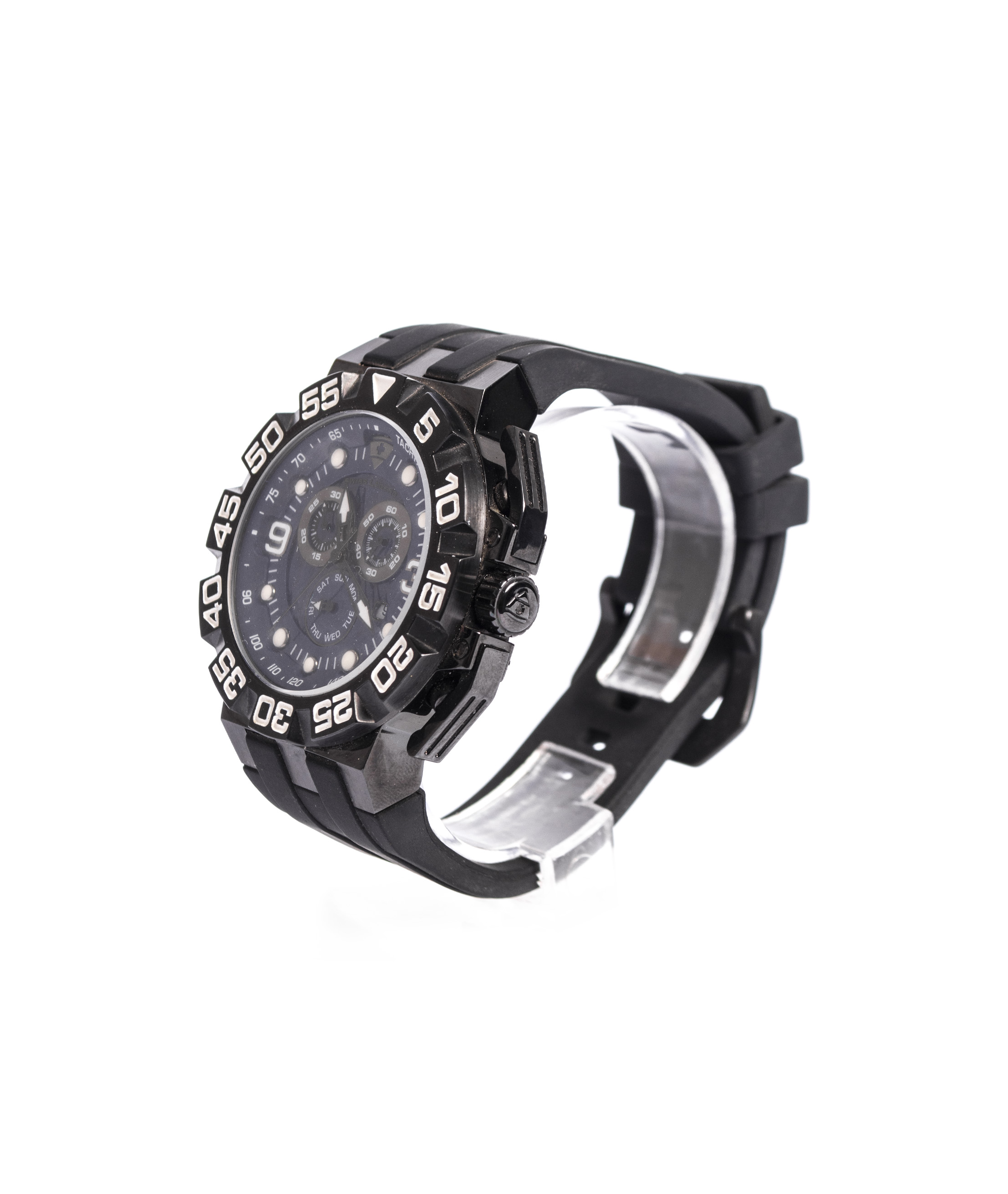 Il s'agit d'une authentique montre de sport suisse Legend Challenger 10125 pour homme en acier inoxydable noir et gris avec un bracelet en silicone noir et une boucle Swiss Legend en acier inoxydable noir.